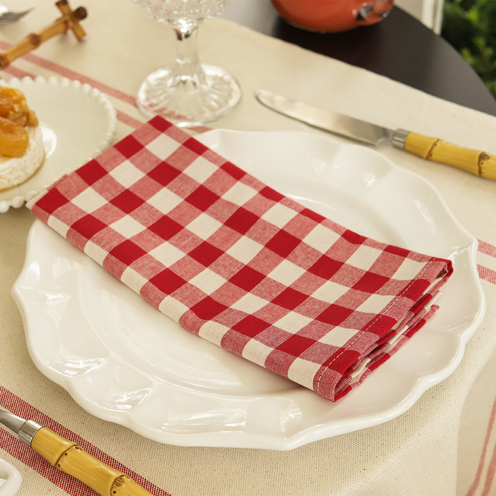 O xadrez na mesa posta remete a momentos aconchegantes e clássicos. O Guardanapo Filomena Xadrez Vermelho traz esse charme atemporal, unindo autenticidade e sofisticação para composições versáteis e acolhedoras.