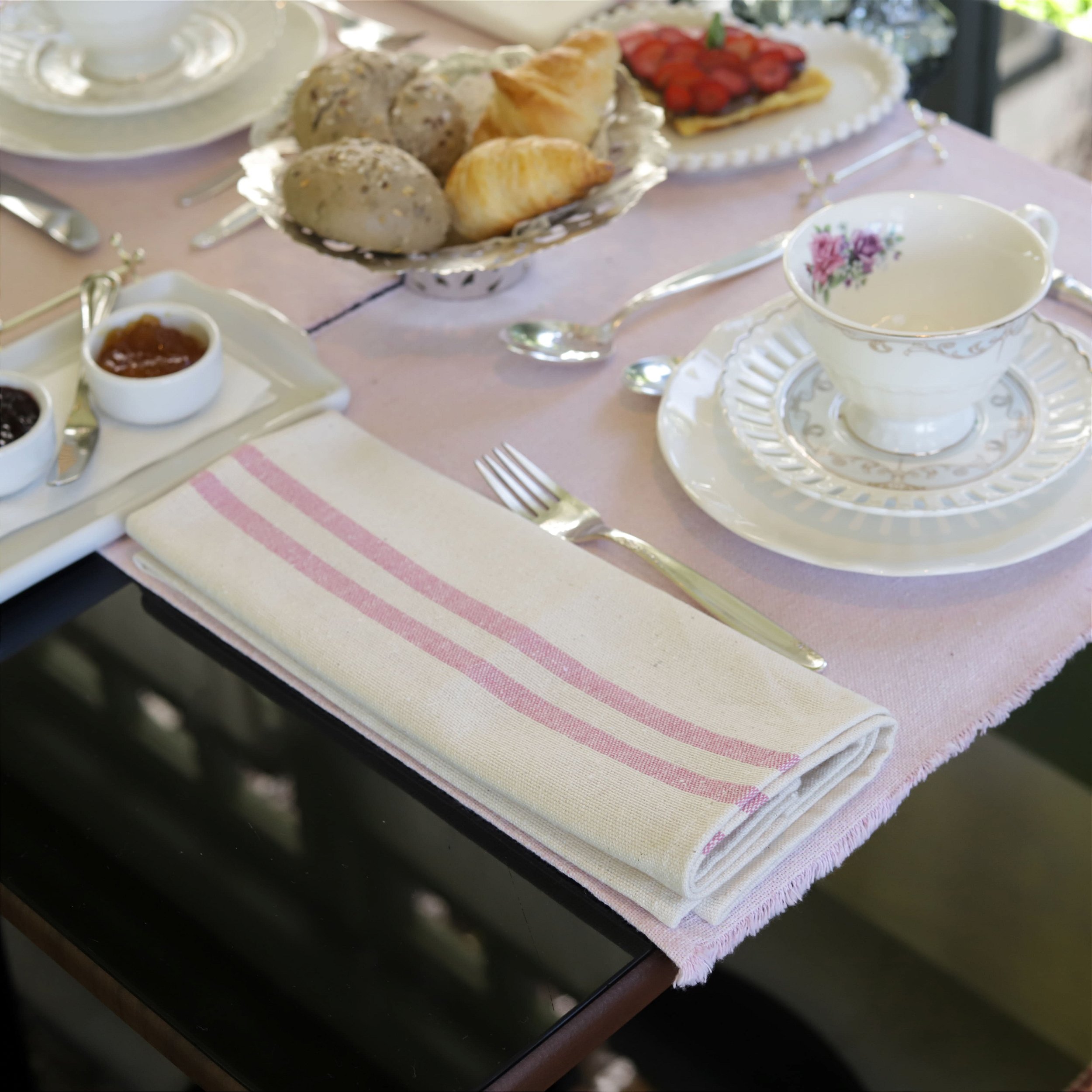 Sofisticação sem esforço. As listras vermelhas do Guardanapo Juliana trazem um ar casual chic para a mesa, equilibrando elegância e atemporalidade. Com uma textura macia, ótima absorção e alta durabilidade. Seu design off-white com listras rosas combina com diferentes estilos de decoração. Uma peça clássica, funcional e indispensável para quem ama receber bem.