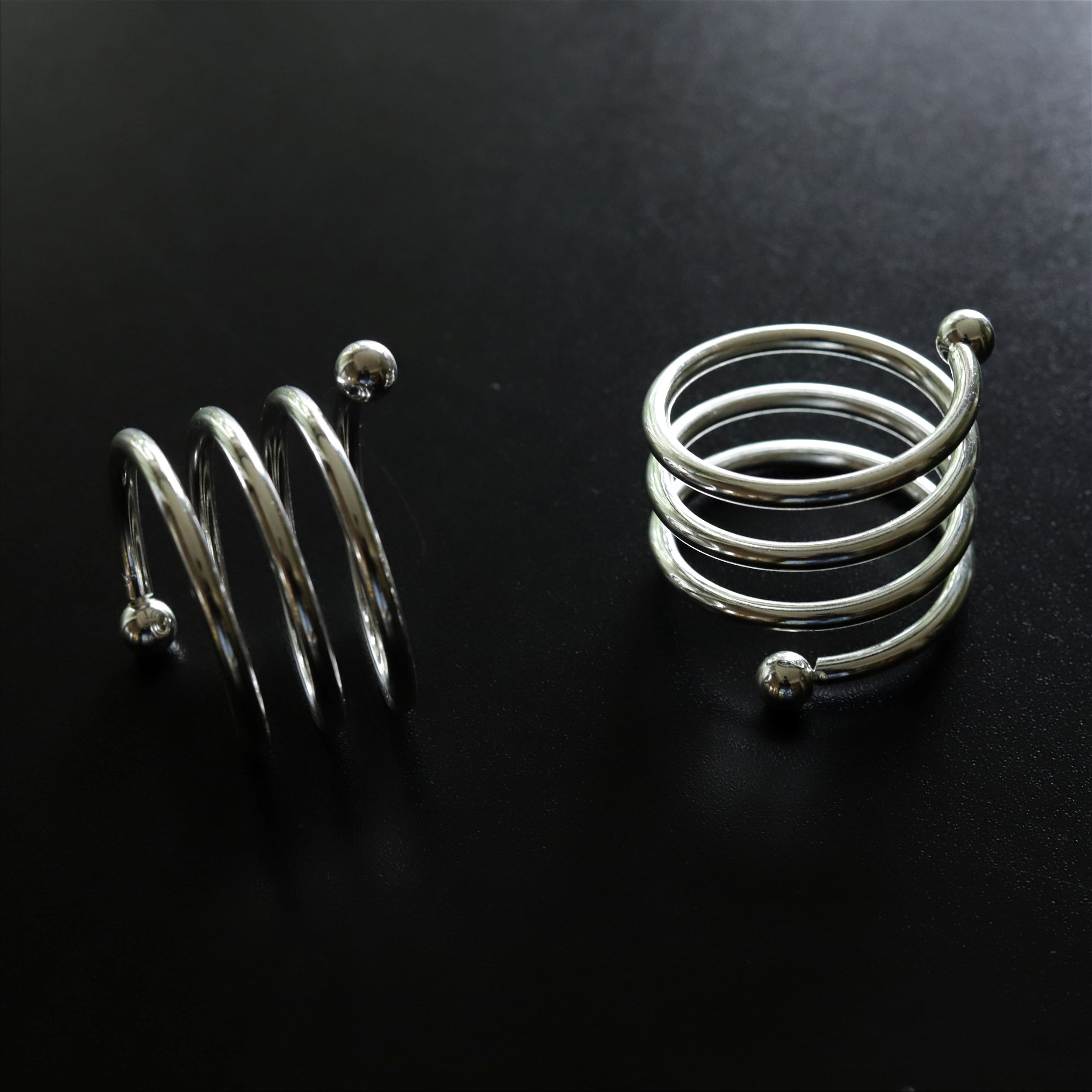 Este conjunto com 2 porta-guardanapos em espiral é produzido em metal prata de alta qualidade, oferecendo durabilidade, brilho intenso e um acabamento elegante para compor mesas especiais. O design em espiral é moderno, sofisticado e perfeito para acompanhar guardanapos de tecido individuais, valorizando qualquer composição de mesa.